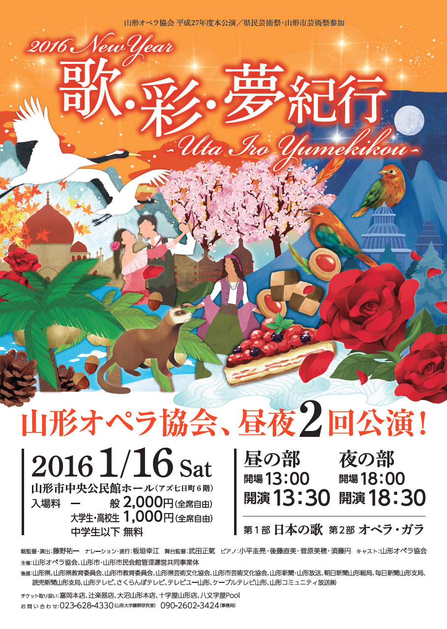 | お問合せ | 山形オペラ協会事務局 携帯:090-2602-3424 山形大学藤野研究室 電話:023-628-4330 |