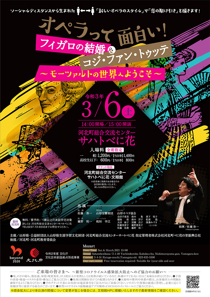 | チケット取扱い | 河北町総合交流センター サハトべに花、文翔館 ※前売券に残席のある場合のみ当日券を販売いたします。詳しくはお問い合わせください。 |