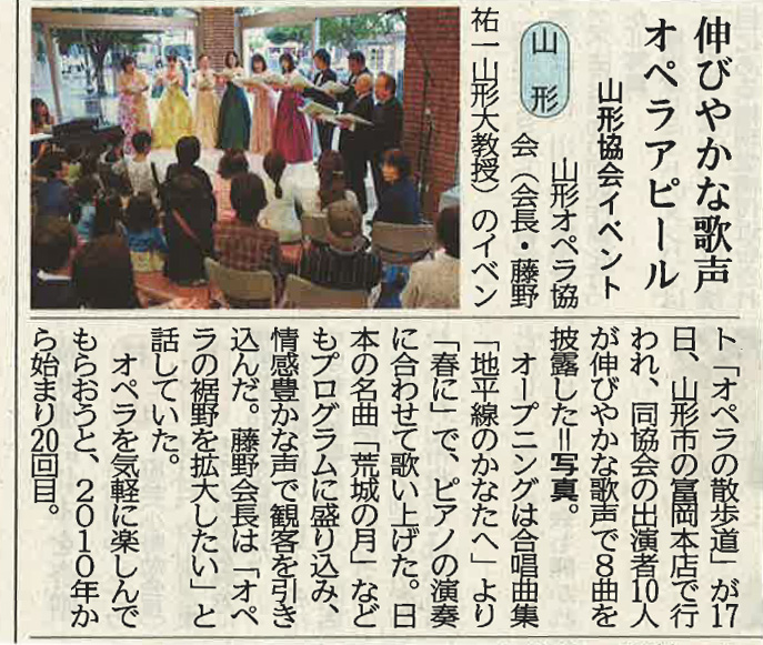平成29年9月17日(日)に行われた「オペラ・プロムナード vol.20」にて山形新聞の取材を受けました。(2017年9月18日)※画像をクリックすると新聞記事の拡大画像が開きます