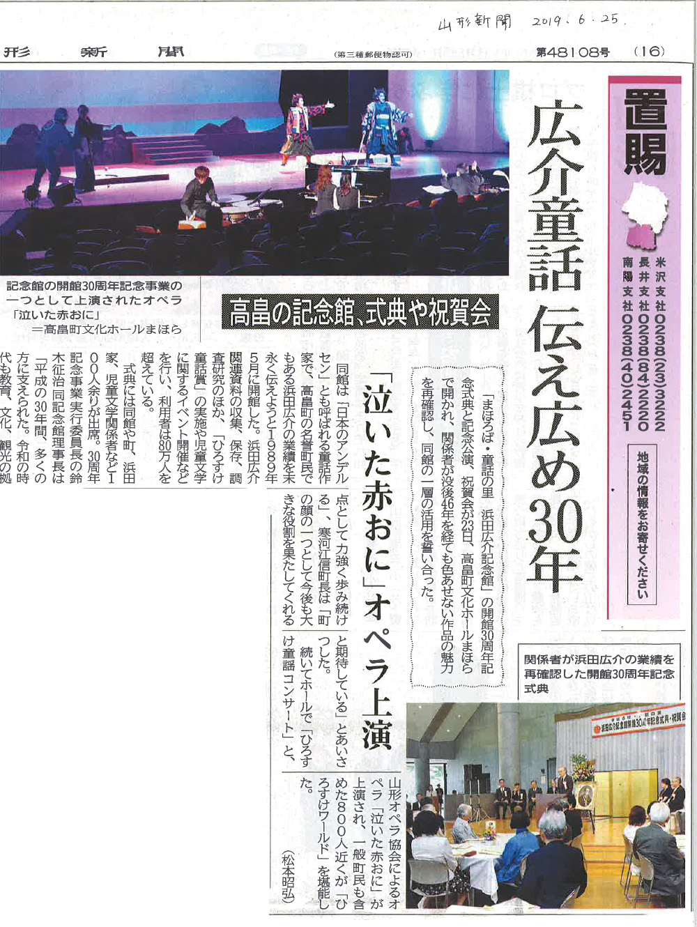 オペラ「泣いた赤おに」が山形新聞に掲載されました。(2019年6月25日)※画像をクリックすると拡大画像で記事が読めます